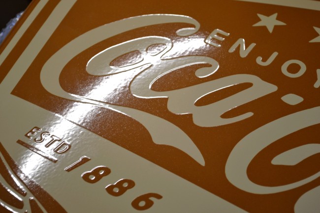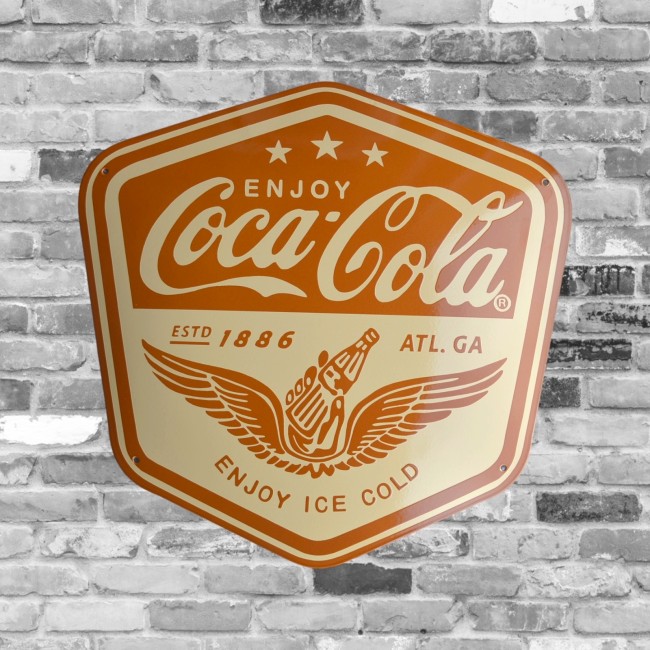 Référence : plaque emaillee coca cola beige